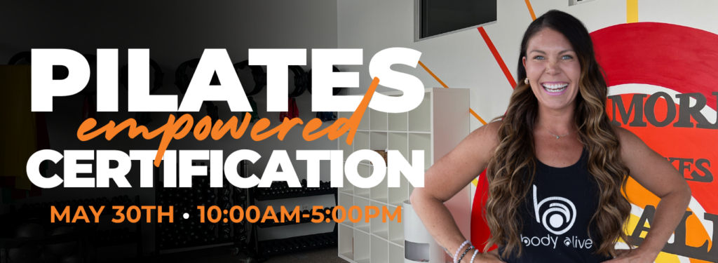 Join Sam for the Pilates Empowered Certification on Saturday, May 30th from 10:00am-5:00pm at Body Alive Aurora. Bring your Hot Mat Pilates practice ALIVE! Deepen your practice, move with intention and unleash your potential! Whether you want to learn about basic Pilates principles or become an instructor you will walk away understanding your practice, feeling confident and empowered. Click below or email info@bodyalivefitness.com to register now!