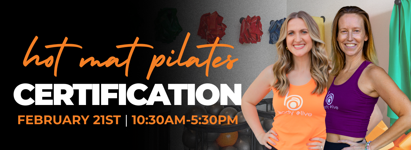 Join Steph and Ali for the Hot Mat Pilates Certification on Saturday, February 21st from 10:30am-5:30pm at Body Alive Mason. Bring your Hot Mat Pilates practice ALIVE! Deepen your practice, move with intention and unleash your potential! Whether you want to learn about basic Pilates principles or become an instructor you will walk away understanding your practice, feeling confident and empowered. Click below or email info@bodyalivefitness.com to register now!