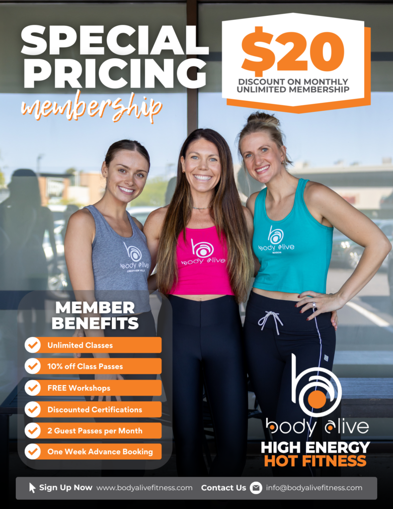 Choose Your Membership:* 6 Weeks for $36 (not available at Clifton or Orem)$20 off unlimited monthly membership10% off 10 class pack10% off 20 class pack10% off 30 class pack